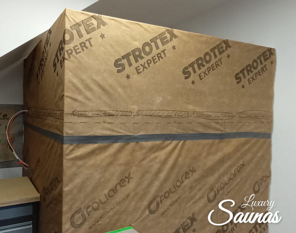 Ta historia zaczęła się od świetnego pomysłu naszej klientki, na wykorzystanie miejsca w przydomowym garażu, do naszej realizacji na miejscu w Chrzanowie. Zbudowaliśmy saunę o wymiarach zewnętrznych 1,6m x 2m, z planowaną pustą przestrzenią na dachu sauny, aby umieścić tam do samochodu oraz inne drobiazgi. Sercem sauny został wiszący piec Harvia, a za uprzyjemnianie saunowania służy zestaw nagłośnienia JBL.